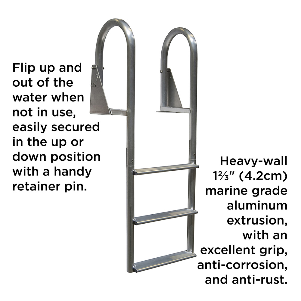 Ces échelles à marches larges et rabattables ont une profondeur de marche de 4″ et sont idéales pour accéder d’un pied sûr à l’eau ou au bateau et en sortir. Avec une capacité de charge de 665 lb, ces échelles robustes résisteront à l’épreuve du temps. Parfaites pour les digues ou les quais avec des niveaux d’eau variables.