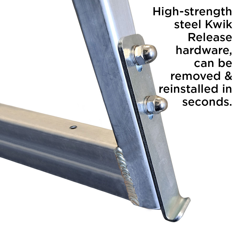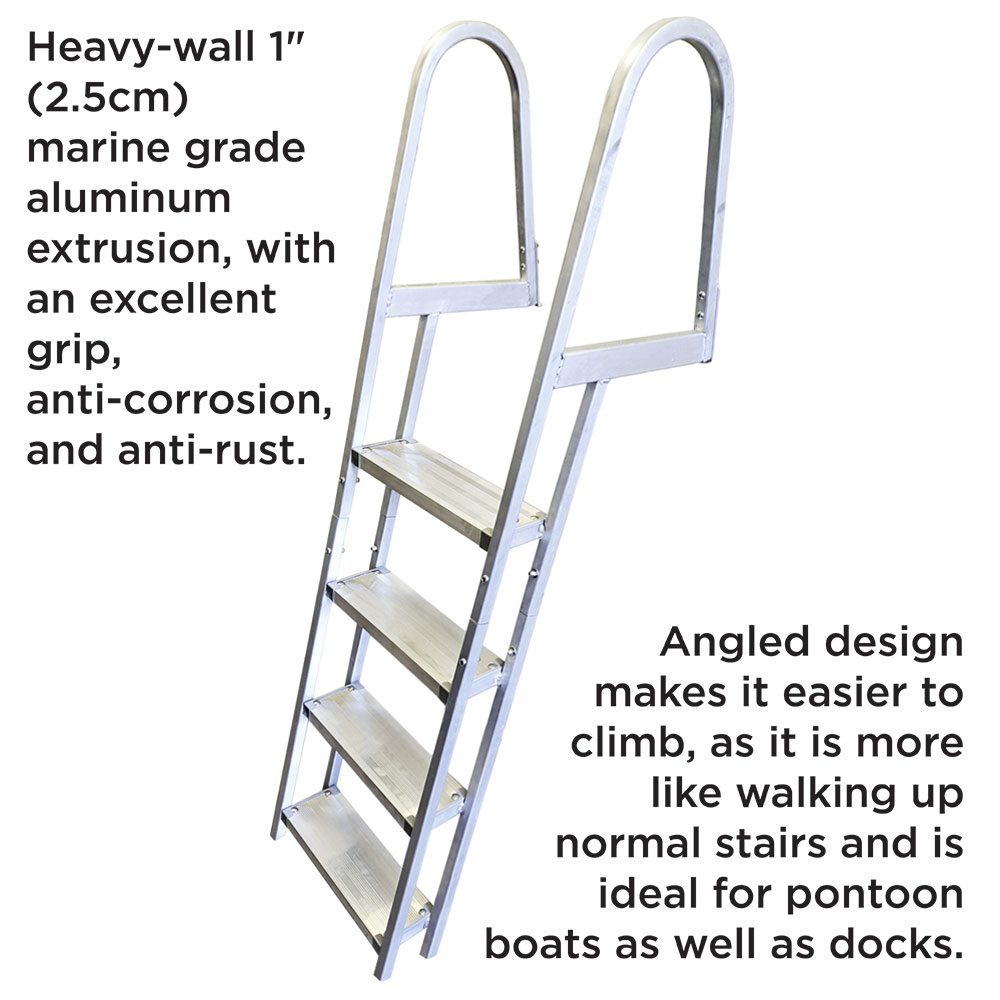 Cette échelle robuste Kwik Release est fabriquée à partir d’un tube carré en aluminium de 1″ et, grâce au matériel Kwik Release inclus, elle peut être retirée et réinstallée en quelques secondes. Cette caractéristique, ainsi que le design angulaire, en font un outil idéal pour les pontons et les quais. Les marches nervurées permettent de prendre pied en toute sécurité et le design en angle facilite l’ascension, car il ressemble davantage à un escalier normal. Facile à assembler grâce à la quincaillerie en acier inoxydable incluse.