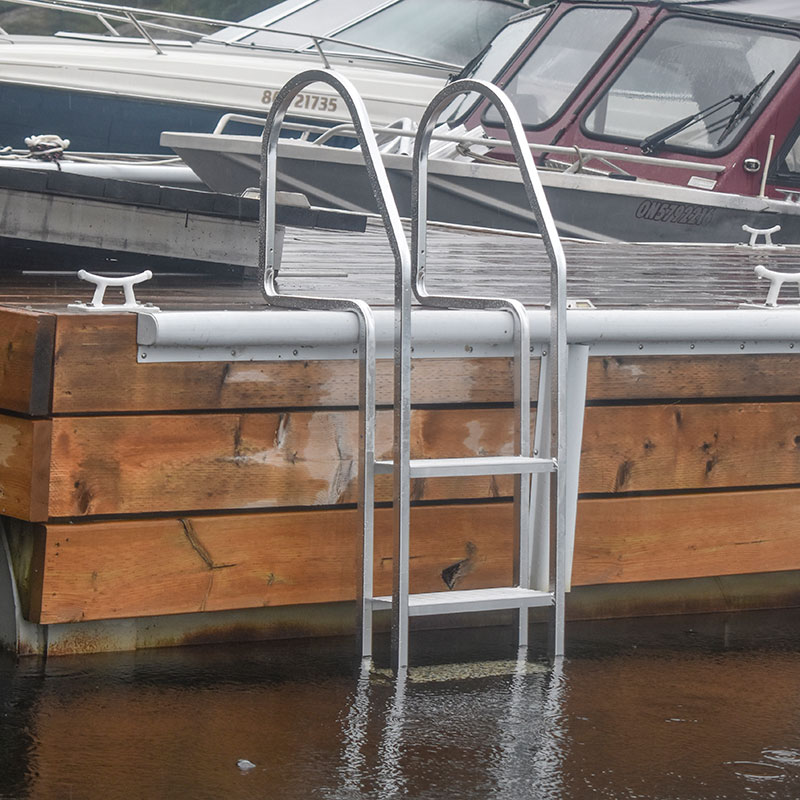 Cette échelle est fabriquée avec des tubes d’aluminium de 1″ à paroi épaisse. Toute la quincaillerie est en acier inoxydable et l’assemblage est rapide et facile. Un kit de fixation rapide est inclus en option. Il vous suffit d’incliner l’échelle vers le haut et de la faire glisser pour la ranger et la nettoyer, ou de la monter de façon permanente grâce aux trous pré-percés.